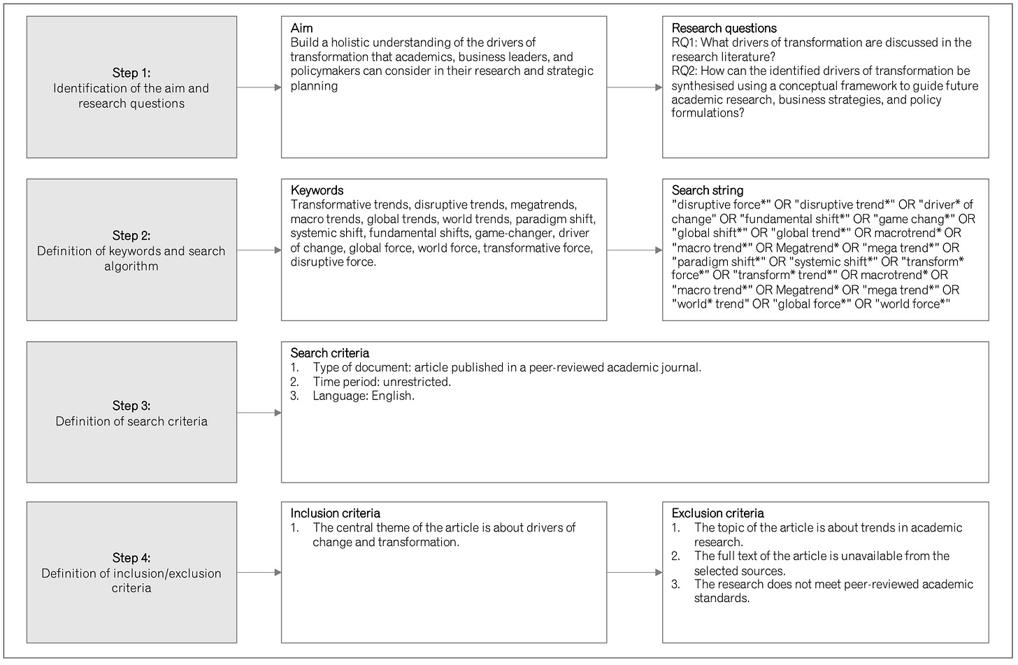 I used a systematic review of the global research literature to identify every driver of transformation discussed across economics, technology, policy, medicine, the environment, geopolitics, and social change.