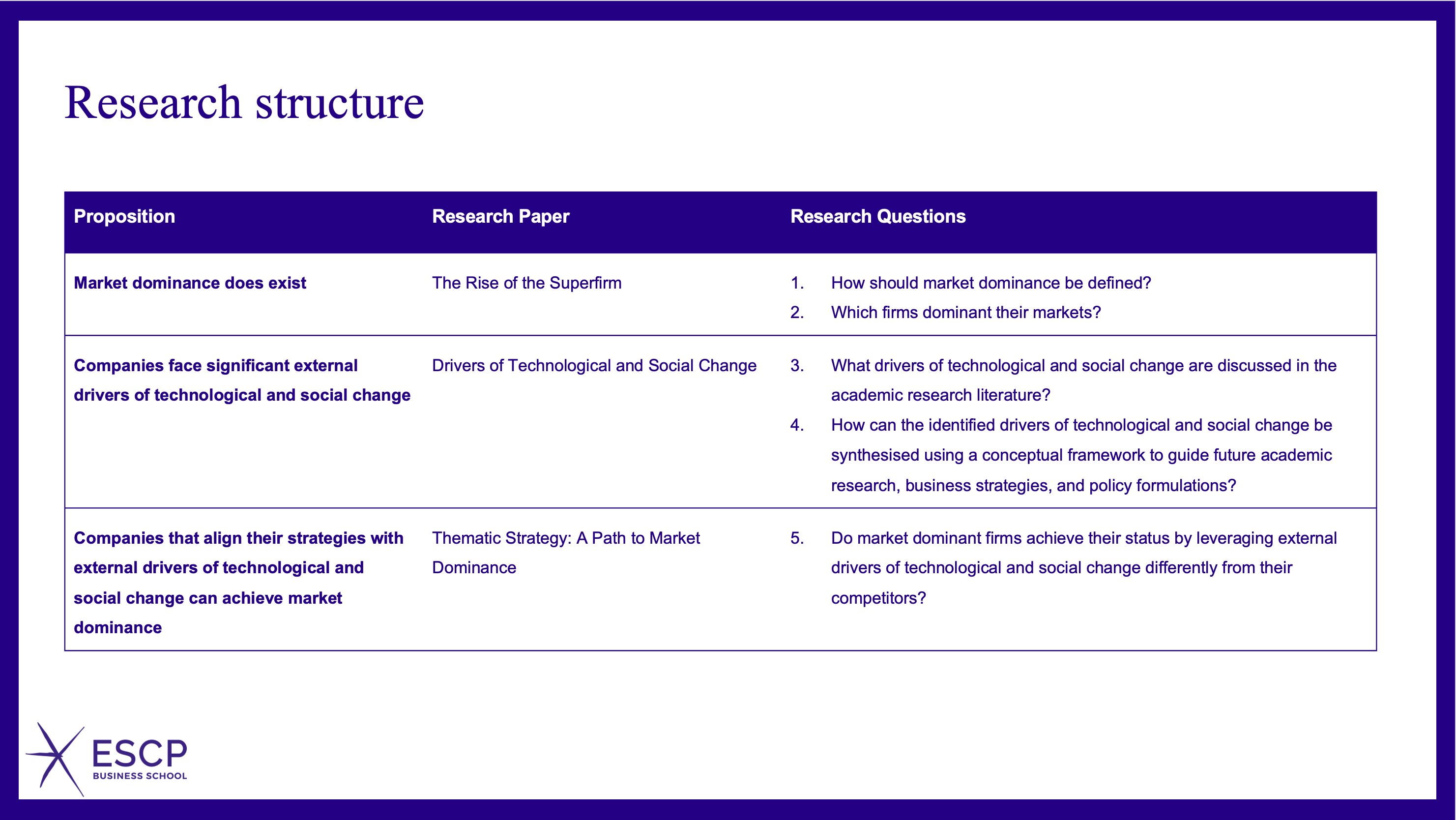 Combined the prior insights by conducting content analysis of 20 years of annual reports of six firms to examine whether strategic alignment with external drivers of transformation distinguishes dominant firms from their peers. This connected the existence of dominance with the conditions under which it can be achieved.