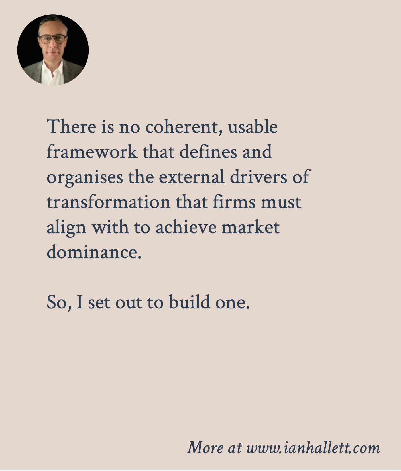 What it produced was a structured driver framework grounded in forty years of academic research, designed to make external transformation legible, comparable, and usable for strategy.